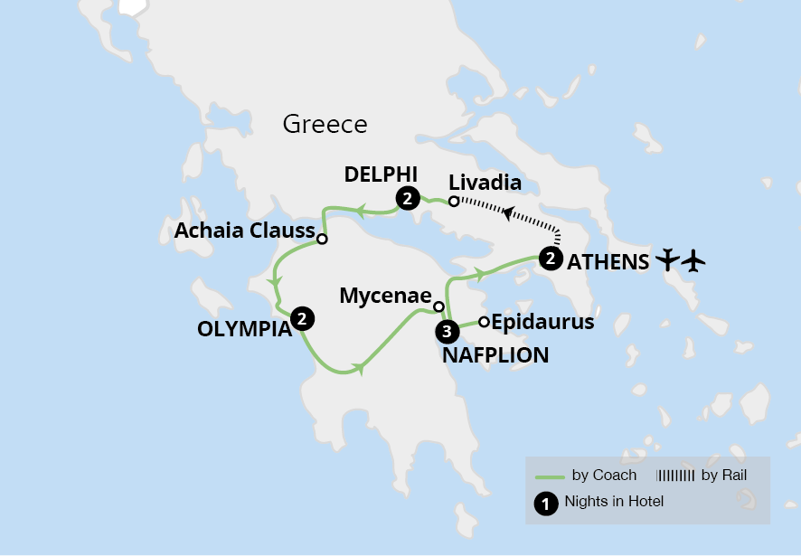 Explore a wealth of historic gems on this journey through Greece and the Peloponnese. Beginning with a two-night stay in Athens, enjoy a guided tour of the magnificent Acropolis, viewing the Parthenon and the jaw-dropping treasures of the museum. Uncover iconic sites overflowing with Greek mythology in Delphi and discover the birthplace of...