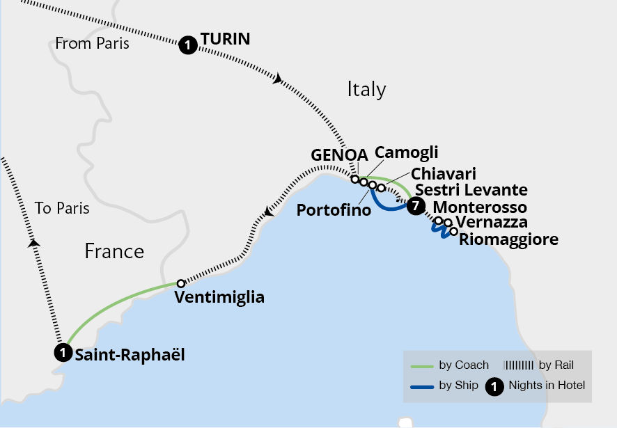 Discover the towns and villages of the Italian Riviera which sparkle beside the Mediterranean Sea, as we explore the Cinque Terre and the harbour town of Portofino. Explore the pastel-hued fishing village of Camogli, a hidden gem, and relax in Sestri Levante - a town between two bays. Sail to San Fruttuoso abbey, set in a secluded cove and...