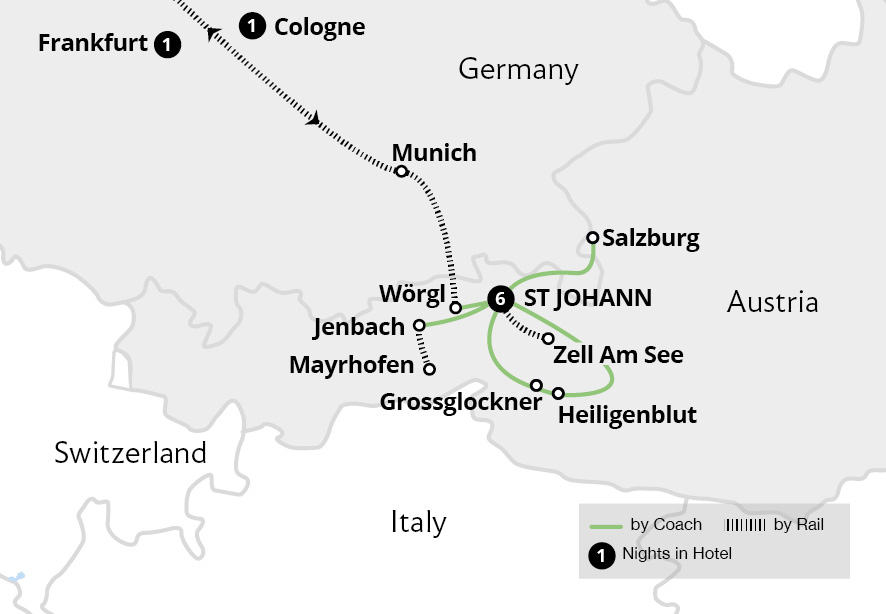 Explore the beautiful towns and landscapes of the Austrian Alps based in an all-inclusive hotel in the charming town of St Johann, with drinks included with dinner each evening. Marvel at views of Austria's tallest mountain on a journey across the Hochtor Pass on the Grossglockner High Alpine Road, viewing glaciers and gold-mining towns,...