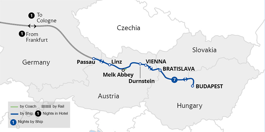 Enjoy a leisurely cruise through four countries and three capital cities, basking in beautiful river scenery all the way. Sail from the German town of Passau through the Austrian wine-growing region of the Wachau Valley, admiring picturesque Dürnstein and Melk Abbey enroute. After exploring imperial Vienna, the captivating Hungarian capital...
