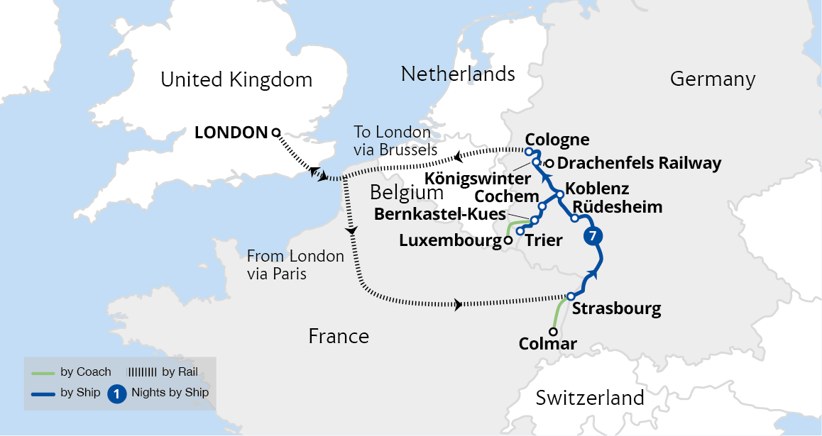 Become part of the sensational Rhine in Flames spectacle during this seven-night luxury river cruise from Cologne to Strasbourg. Explore historic Koblenz and admire panoramic views of the Rhine Valley aboard the Drachenfels Railway, before enjoying a dazzling fireworks display from the front-row seats of our ship in St Goar. Continuing our...