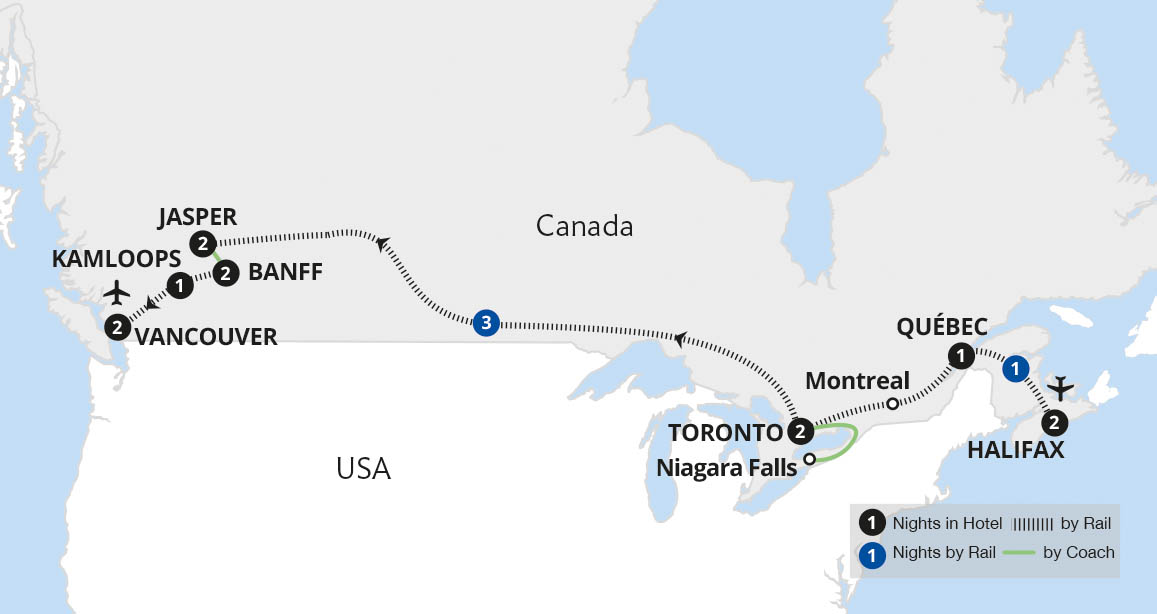 A magnificent small-group tour across the remarkable landscapes of Canada. This holiday features stays in the country's grandest hotels and is connected by journeys on the Ocean, VIA Rail's Canadian and the Rocky Mountaineer. From Québec City's world-famous Le Château Frontenac and on to Toronto, Jasper and Banff then on to Vancouver and...