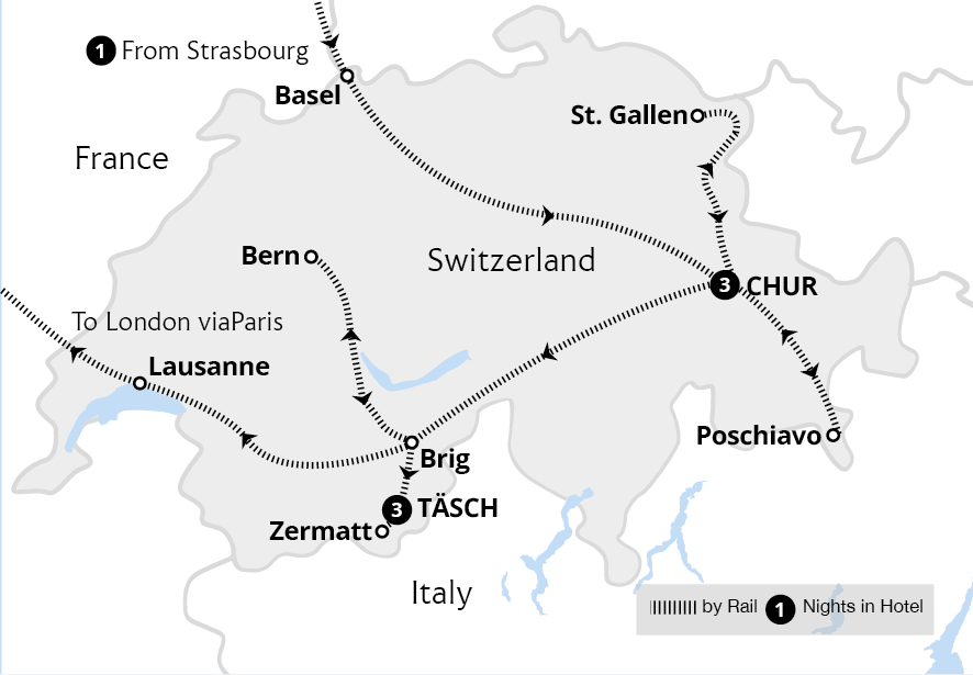 Enjoy Switzerland's warm hospitality and astounding landscapes from traditional four-star hotels in historic Chur and idyllic Täsch, soaking up dramatic scenes of soaring peaks and glaciers aboard two iconic trains. Cross the Alps on the Bernina Express, admiring glacier views enroute to Poschiavo, and bask in the beauty of alpine valleys and...