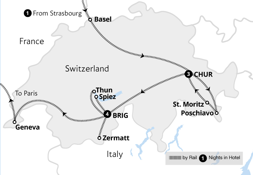Switzerland. In Basel, we join the efficient Swiss rail network in
