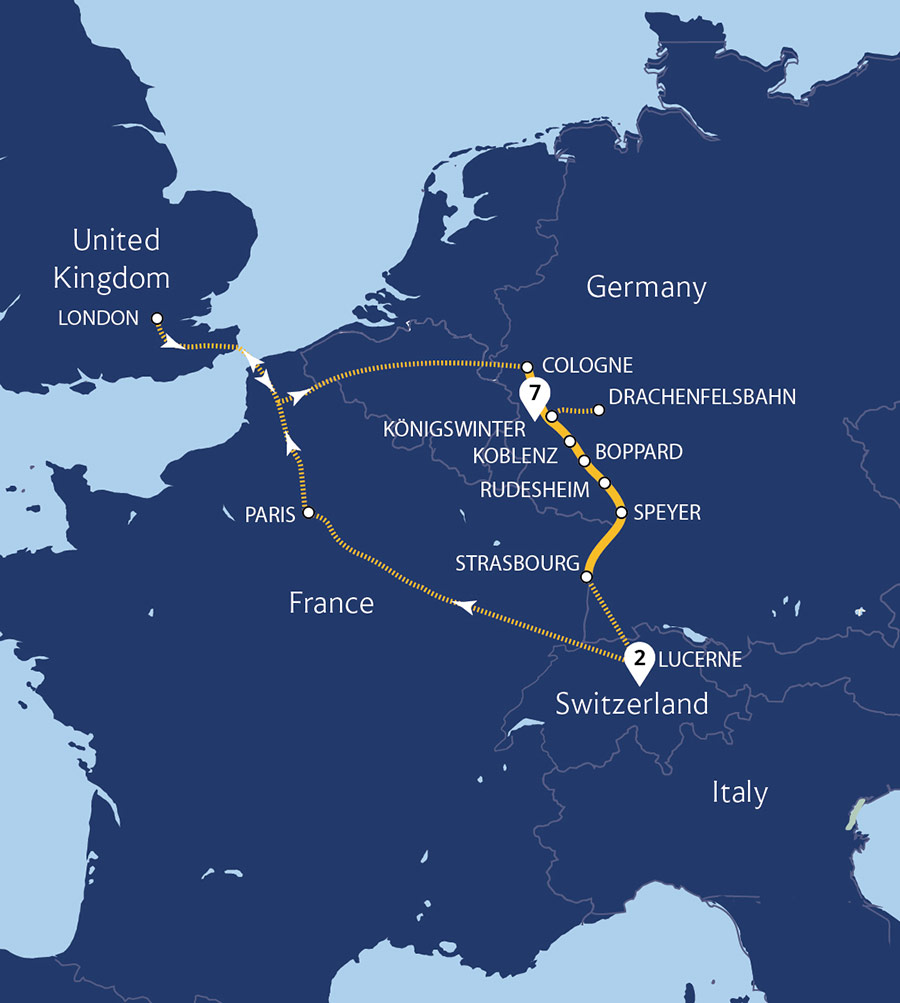 Experience luxurious relaxation and captivating exploration, sailing through picturesque towns along the Rhine before heading into the Swiss Alps for mountain railways
